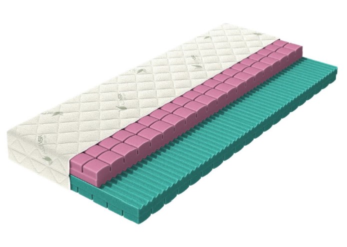 | Makké vrstvy: HR pena 35 kg/m3 tvrdosť 3,8 kPa , výška 9 cm, HR pena 37 kg/m3 tvrdosť 4,6 kPa , výška 9 cm, |